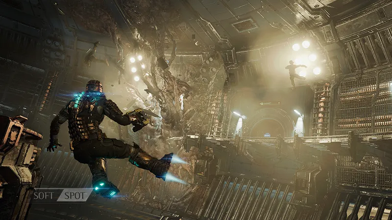هسته اصلی گیمپلی یعنی قطعهقطعه کردن استراتژیک (Strategic Dismemberment) دشمنان، همچنان لذتبخش و دلهرهآور است. در ریمیک، سیستم جدیدی به نام Peeling System اضافه شده که باعث میشود گوشت و پوست دشمنان بر اثر ضربات جدا شود و بازیکن بتواند میزان آسیب وارده به استخوانهای آنها را ببیند. یکی از تغییرات بزرگ، پیوسته شدن نقشه بازی است؛ حالا کل سفینه ایشیمورا به صورت یکپارچه در دسترس است و هیچ لودینگی بین بخشها وجود ندارد. همچنین سیستم جابهجایی در محیطهای بدون جاذبه (Zero-G) کاملاً بازطراحی شده و به بازیکن اجازه پرواز ۳۶۰ درجه میدهد که بسیار روانتر از نسخه ۲۰۰۸ است.