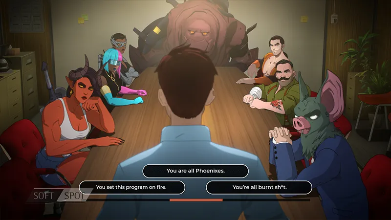 گیمپلی بازی بیشتر بر پایه انتخابهای روایی و مدیریت تیم بنا شده است. بازیکن با استفاده از نقشه شهر، مأموریتها را به اعضای تیم محول میکند و باید با انتخابهای دیالوگی و رویدادهای سریع (Quick-Time Events) مسیر داستان را شکل دهد. برخلاف بازیهای کلاسیک ماجراجویی، حرکت آزاد در محیط سهبعدی وجود ندارد؛ تمرکز بر تصمیمگیری و مدیریت منابع انسانی است. این سبک باعث میشود بازیکن بیشتر درگیر روابط و پیامدهای انتخابها شود تا اکشن مستقیم. در نتیجه، تجربهای شبیه به بازیهای Telltale اما با لایه مدیریتی اضافه ارائه میشود.
